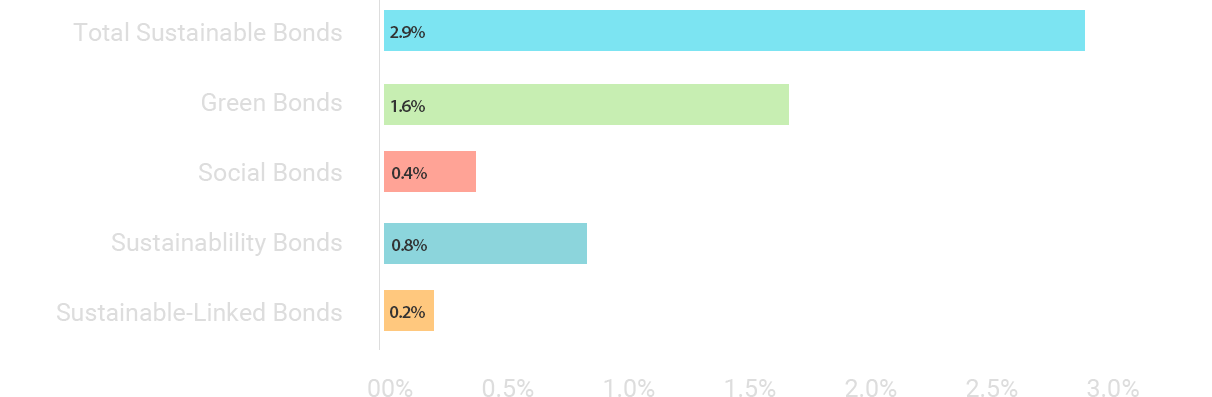 This breakdown does not include bonds of issuers that do not adhere to the International Capital Market Association (ICMA) standards on labelled bonds.